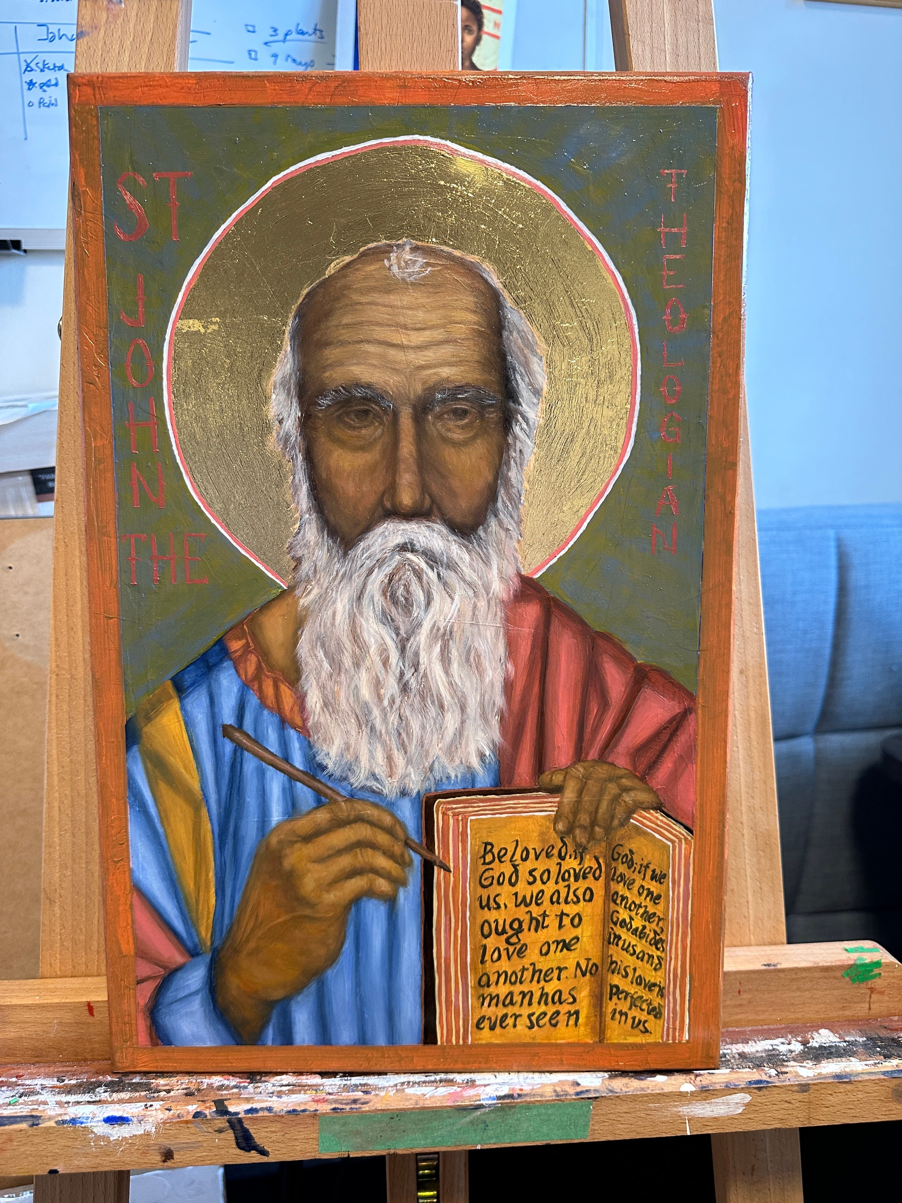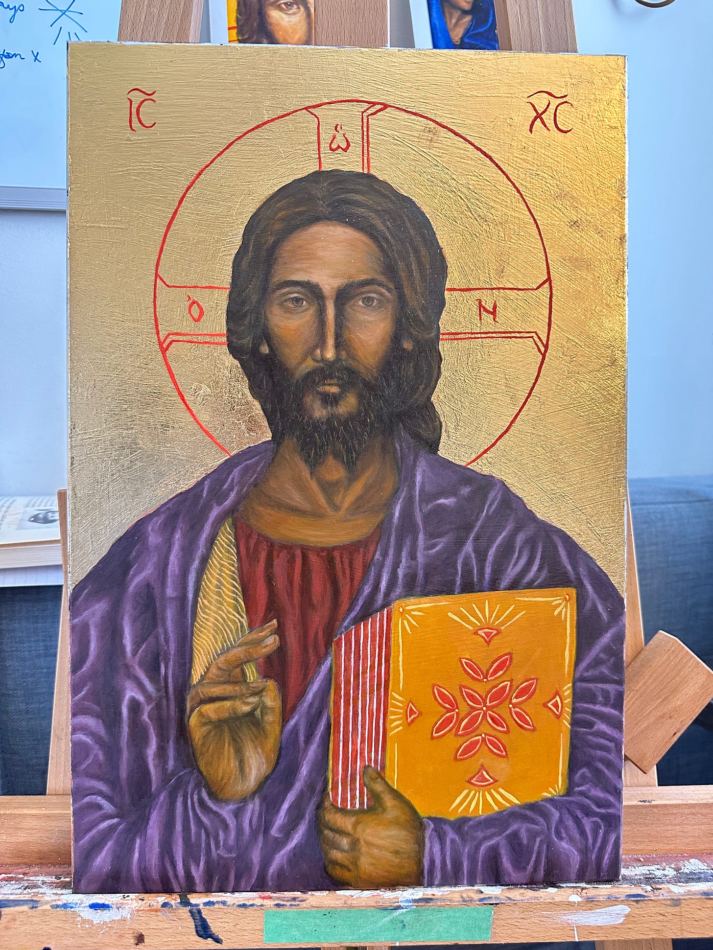 Some people hate it when I say “painting” instead of “writing”. But the truth is, in English we have two verbs for two different actions: painting & writing. So it’s proper to say “painting” icons not “writing” icons.